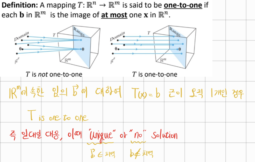 왼쪽 그림의 경우 치역의 값을 표현하는 방법이 여러 가지임을 나타내며 오른쪽은 표현하는 방법이 1가지 이지만 공역일 경우는 표현하지 못함을 의미함. ( One to One은 Existence가 아닌 Uniqueness 를 따지는 것이기 때문이다.