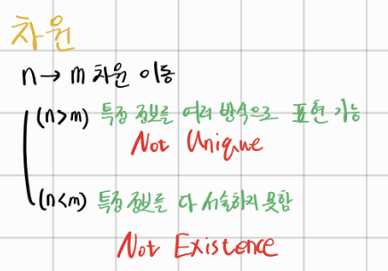 3차원은 수 많은 2차원으로 이루어짐... 하지만 2차원은 3차원의 극 일부에 불구함.. 이 사실을 Onto, One-to-One 에 적용하면 이해하기 편함.