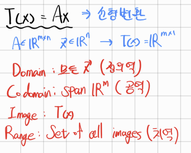 Linear combination꼴로 해당 좌표계의 좌표축, 기저벡터로 값을 나타내는 과정으로 이해하는 것이 편함. 위에 처럼 이해할 시 값의 분포가 어떻게 이뤄지는지 생각하기 힘들지만 아래 처럼 이해하면 Range가 2차원인지 3차원인지 이해하기 쉬울 것 이다.