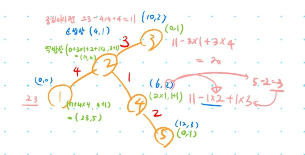 1번의 dfs로 dt를 채우고자 하였습니다. 그렇기 때문에 순방향과 역방향의 계산을 전부 다 해야할 뿐더러 이미 한 노드에 대해 값이 이미 전부 갱신된 것이 아니기에 애초에 불가능한 방법이었다. 이로 인해 1시간 넘게 삥삥 돌았습니다..