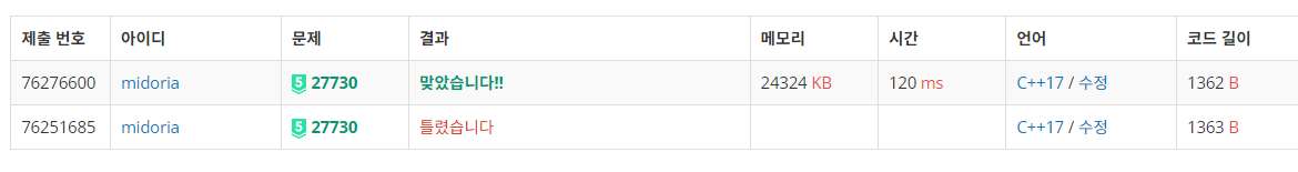 전체적인 문제 해석에는 틀린 점은 없고 실패 과정도 맞는 방법이었는데... 제가 이상하게 뺑뺑 돌아가는 과정이었습니다.