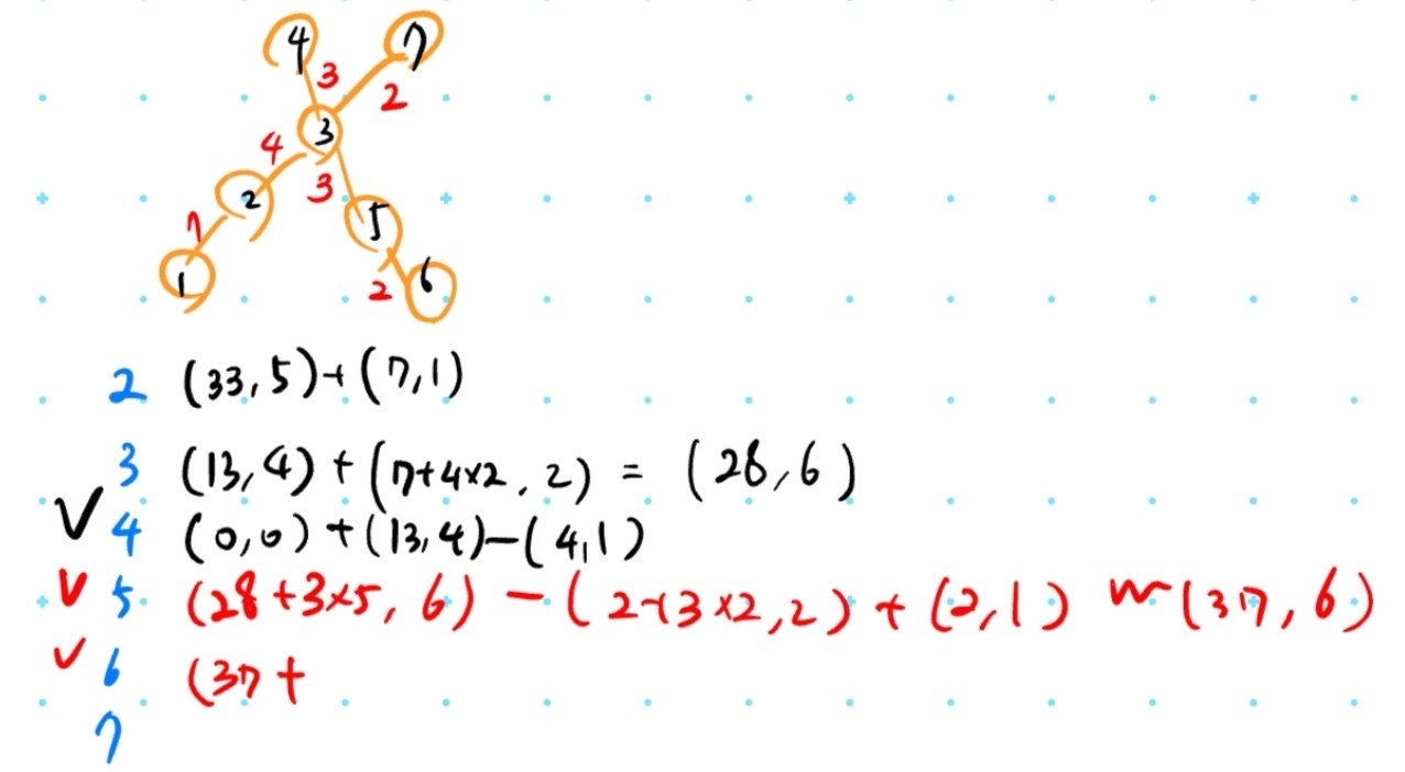 그랬더니 이미 계산한 노드로 부터 인접 노드로 목적지를 바꿀 때 해당 간선을 지나는 횟수가 얼마나 늘어나고 줄어드는지를 통해 계산을 매우 쉽고 간편하게 할 수 있었다.