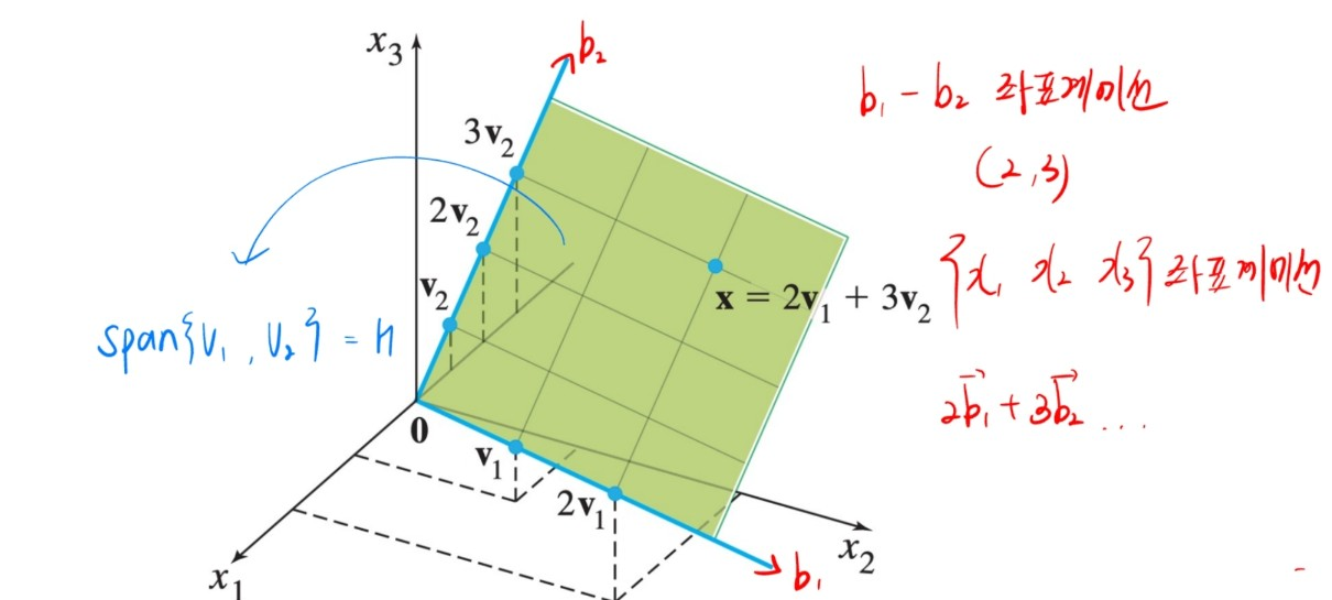 부분 공간 H를 100% 표현 하기 위해 필요한 최소한의 벡터 집합을 의미한다. 최소의 벡터 집합이므로 기저(Basis)끼리 선형 독립이다. 즉, 선형 독립 벡터들을 뽑아내자!