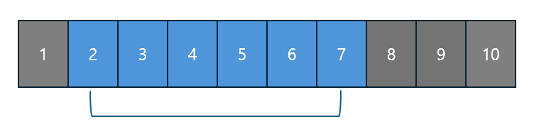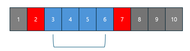 위와 같은 상황은 고려 사항 1을 만족합니다. 하지만 O(NM) 으로 TLE가 나올 것은 뻔합니다. 위와 같은 문제점을 분석하자면 Query의 시작점이 비슷한 곳에 뭉쳐있지만 끝 부분의 변동이 크다는 사실을 알 수 있습니다.