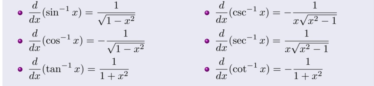1. arcsinh 2. arccosh 3. arctanh 4. arccsch 5. arcsech 6. arccoth 7. 정리 및 팁 삼각함수와 하이퍼볼함수의 역함수 미분을 외우기 쉬운 팁이 있다. 1) 도함수 사용 역함수의 도함수를 구하기 위해 f(y) = x꼴로 바꾼 후 미분하여 해당 식을 활용한다. 이를 통해 원래 함수의 도함수를 사용함을 알 수 있다. 2) 함수의 관계 이용 전개 과정에서 y를 x에 대한 식으로 전환하는 과정에서 원래 함수의 도함수와 관계있는 식을 이용해 y에 대한 함수를 x로 바꿀 수 있다. 이를 통해 대략적인 함수식을 떠올릴 수 있다. 3) 적용 sin과 cos의 경우 $sin^2x + cos^2x = 1$ 이라는 관계식을 통해 $1-x^2$을 연상할 수 있다. tan는 $t..