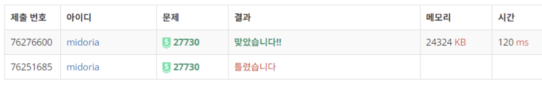 사실 이 문제는 1주일 전에 푼거긴 한데 dynamic programming에서 bottom-up, top-down 기법의 차이를 분석하고 넘어가고자 포스팅하고자 한다. 13250번: 주사위 게임 효빈이는 1부터 6까지 수가 적혀있는 6면 주사위를 가지고 있다. 매번 주사위를 던질 때마다 주사위의 윗 면에 적힌 수 만큼 사탕을 받게 된다. 효빈이가 적어도 N개의 사탕을 받기 위해 주사위를 www.acmicpc.net 1. 문제 분석 dt[i] = i이상의 사탕을 가져올 때 주사위를 던진 횟수의 기댓값으로 지정했다. 또한 주사위는 1~6 자연수 이기에 해당 범위의 dt값에만 영향을 받는다. 2. Bottom-Up Bottom-Up은 문제를 작은 단위로 쪼갠 상태에서 부터 큰 단위로 범위를 확장해 나가는 방..
